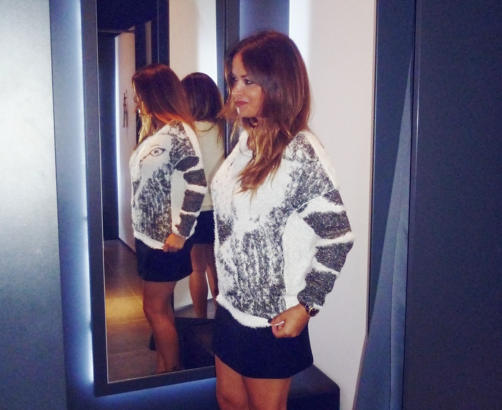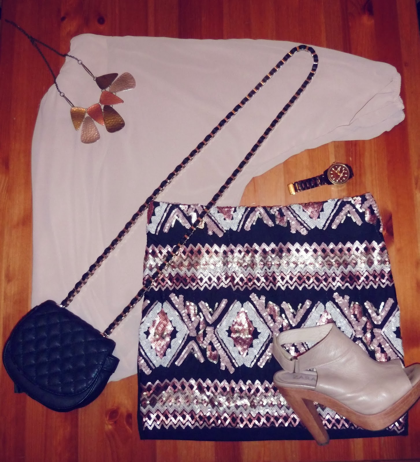 Para la ocasión, elegí este outfit: una falda de lentejuelas con una blusa muy sencilla, look que ya os mostré en Instagram.