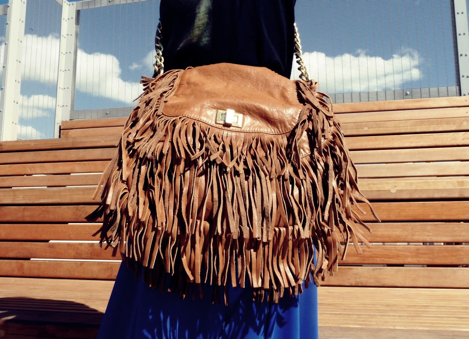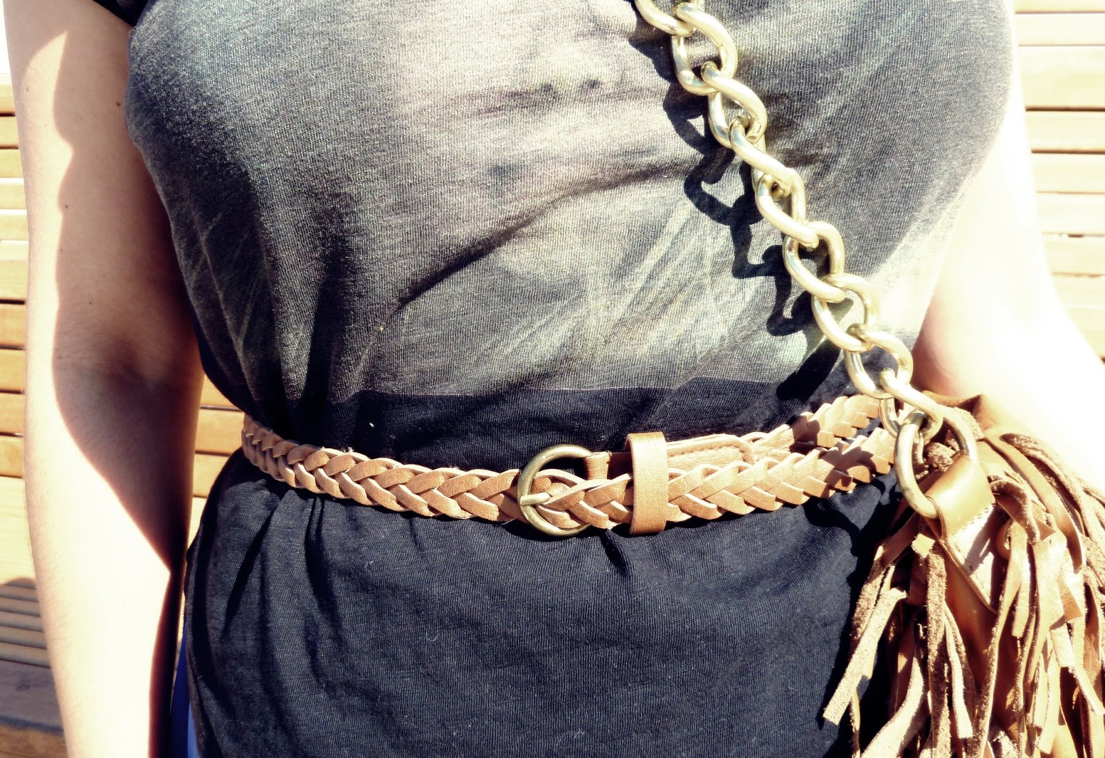 Me gusta introducir prendas en un look que aparentemente no pintan nada, como el bolso de flecos en camel, que he enlazado en el outfit con el cinturón trenzado del mismo color.