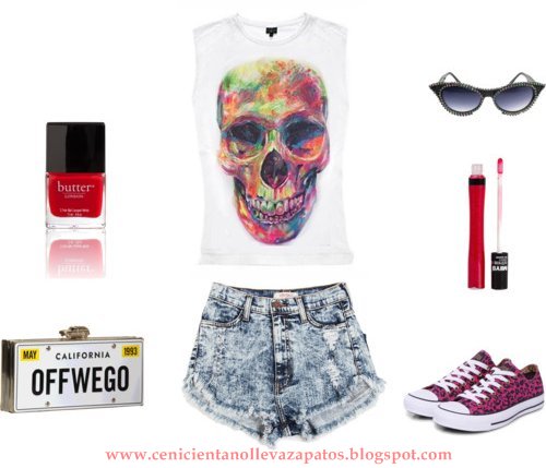 short 2020AVE, gloss NELLY, sneakers CONVERSE, gafas A MORIR, clutch KATE SPADE, camiseta MÄKELISMOS