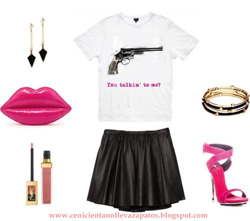 falda MASON, calzado GIUSEPPE ZANOTTI, Gloss YVES SAINT LAURENT, pendientes ALDO, clucth LULU GUINESS, camiseta MÄKELISMOS