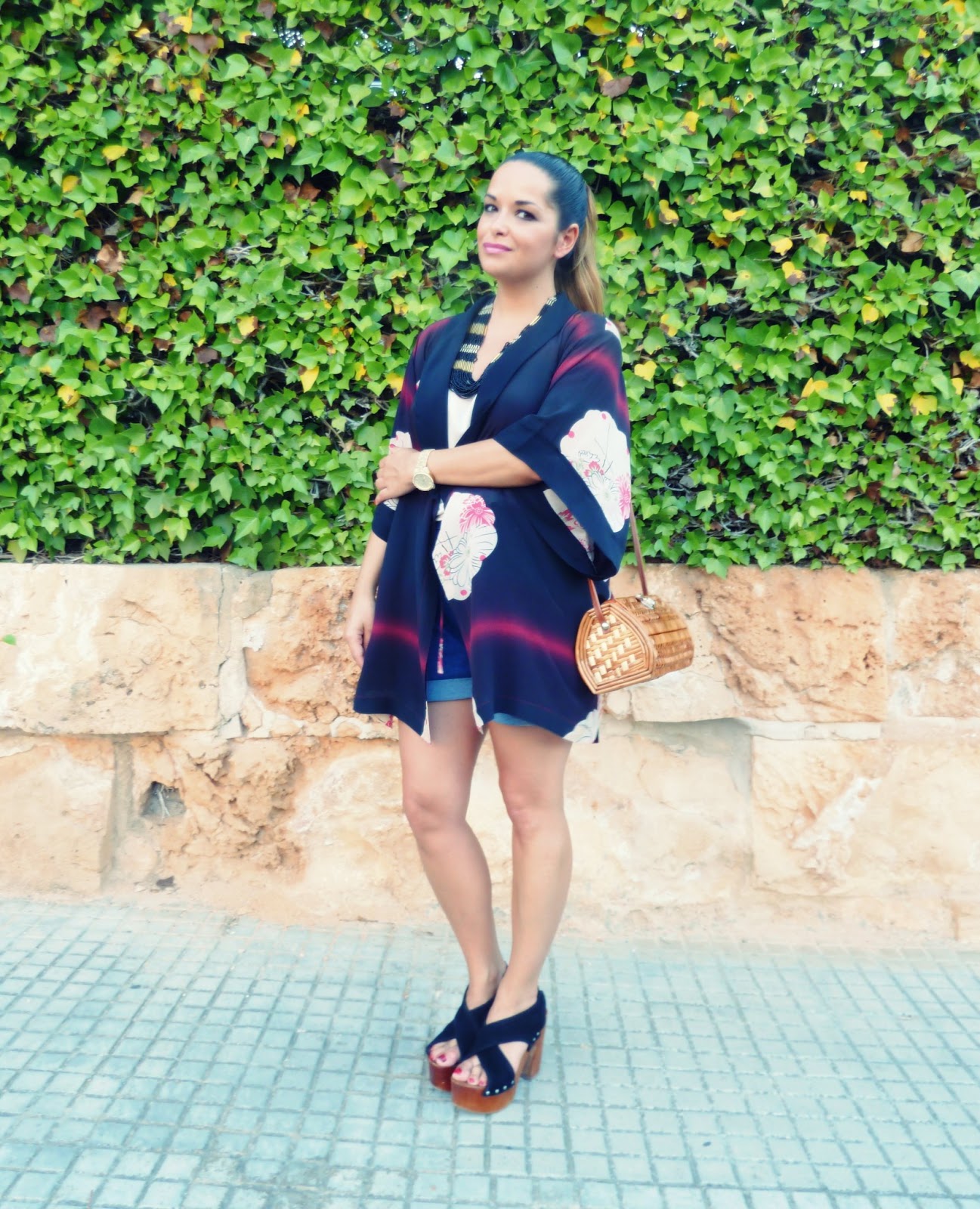 Un look creado casi en su totalidad por prendas de temporadas pasadas. El kimono es de MANGO y tanto me gustó en su entonces esta colección que también me compré un mono con este mismo estampado.
