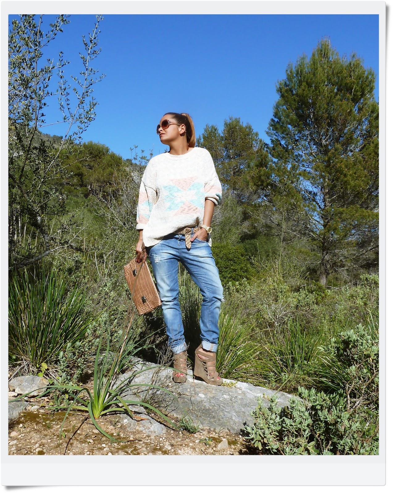 Habréis pensado… ¿qué hace esta loca con semejantes cuñas en el campo? jaja estas son con los que llegué, pero nada más llegar me calcé las botas de montaña. Me las puse para las fotos y con tanta piedra os puedo asegurar que me era casi imposible hasta mantener el equilibrio.