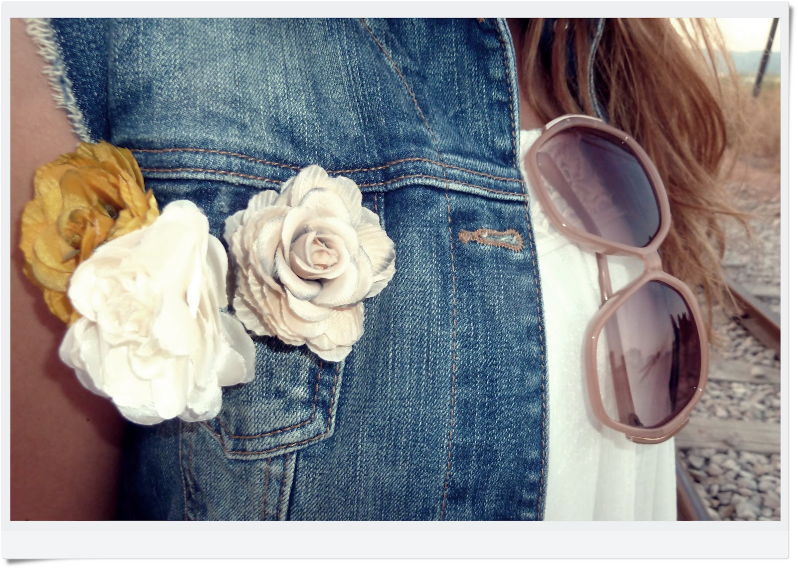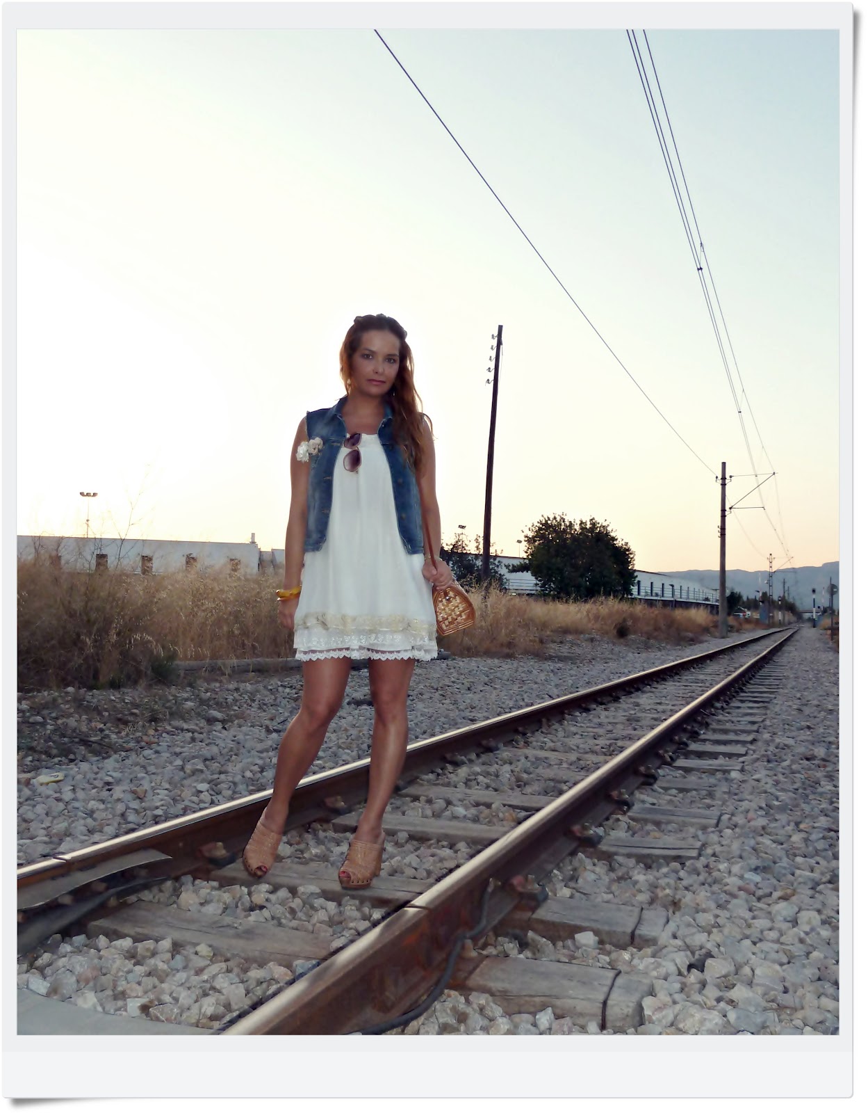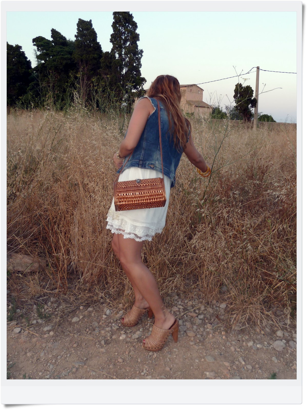 Me encanta esta combinación para verano, el blanco, cualquiera que sea su tejido (lino, crochet, ganchillo, algodón) con toque de tejano, flores y cuero… tan hippie, tan yo!
