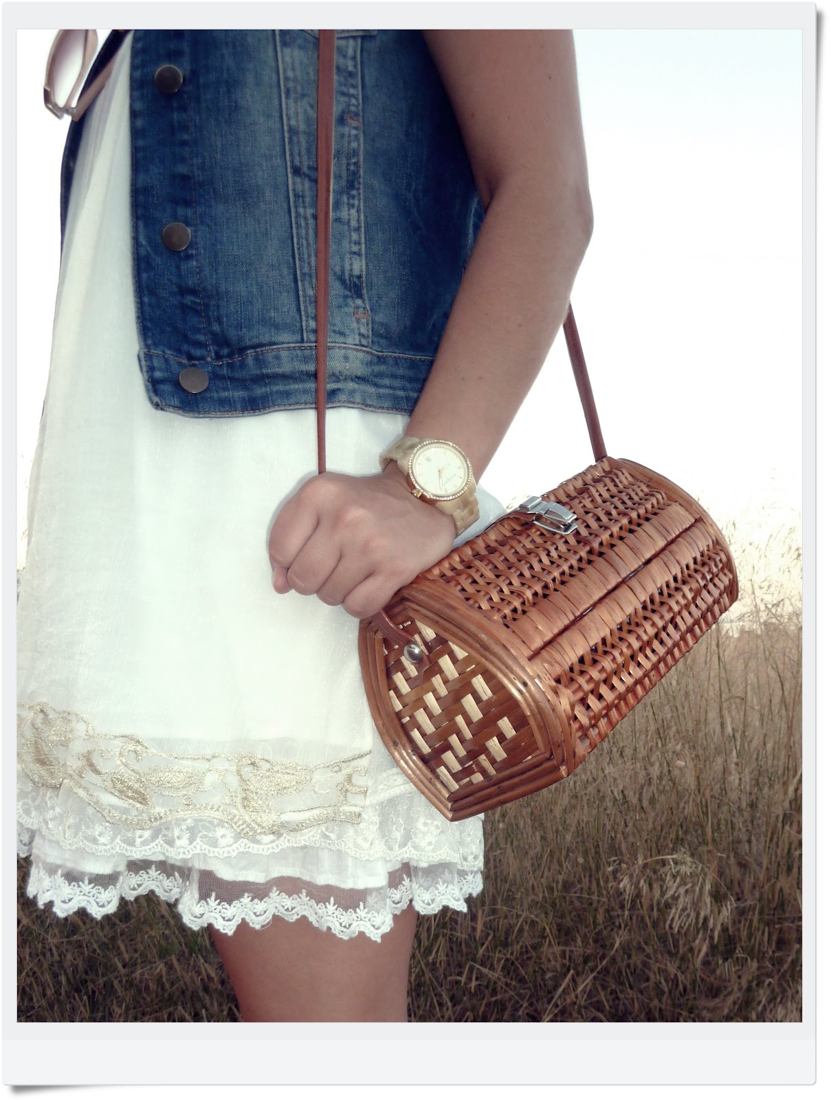Me encanta este bolso, recuerdo que cuando era una enana, mi madre tenía de este estilo pero con asas cortas de mimbre rígido. Cuando vi este en un mercadillo pero en bandolera, tardé nada y menos en hacerlo mío.