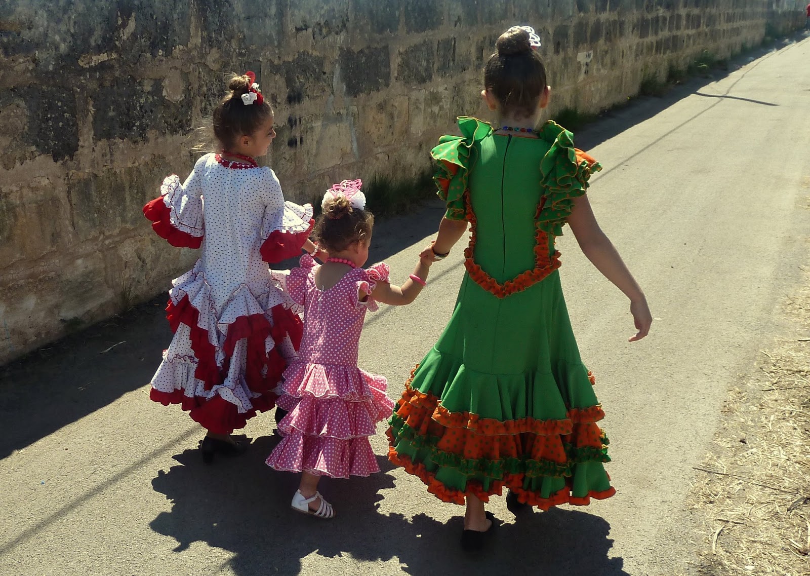 En Mallorca tenemos nuestra particular «Feria de Abril» y cada año os hablo de ella. Mis sobrinas tienen la costumbre de vestirse de sevillanas y aunque no tengo vestido de sevillanas (y tampoco tenía en mente comprarme uno) este año he amoldado un poco mi atuendo para asistir a la Feria un poco acorde con ellas y bien contentas que se han puesto.