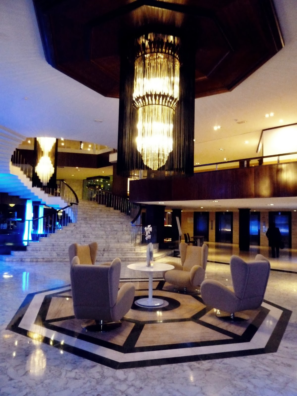 Aproveché que estaba en el hotel para hacer algunas fotos, aunque éstas no le hacen justicia, su decoración es elegante y sofisticada con unas impresionantes lámparas colgantes: