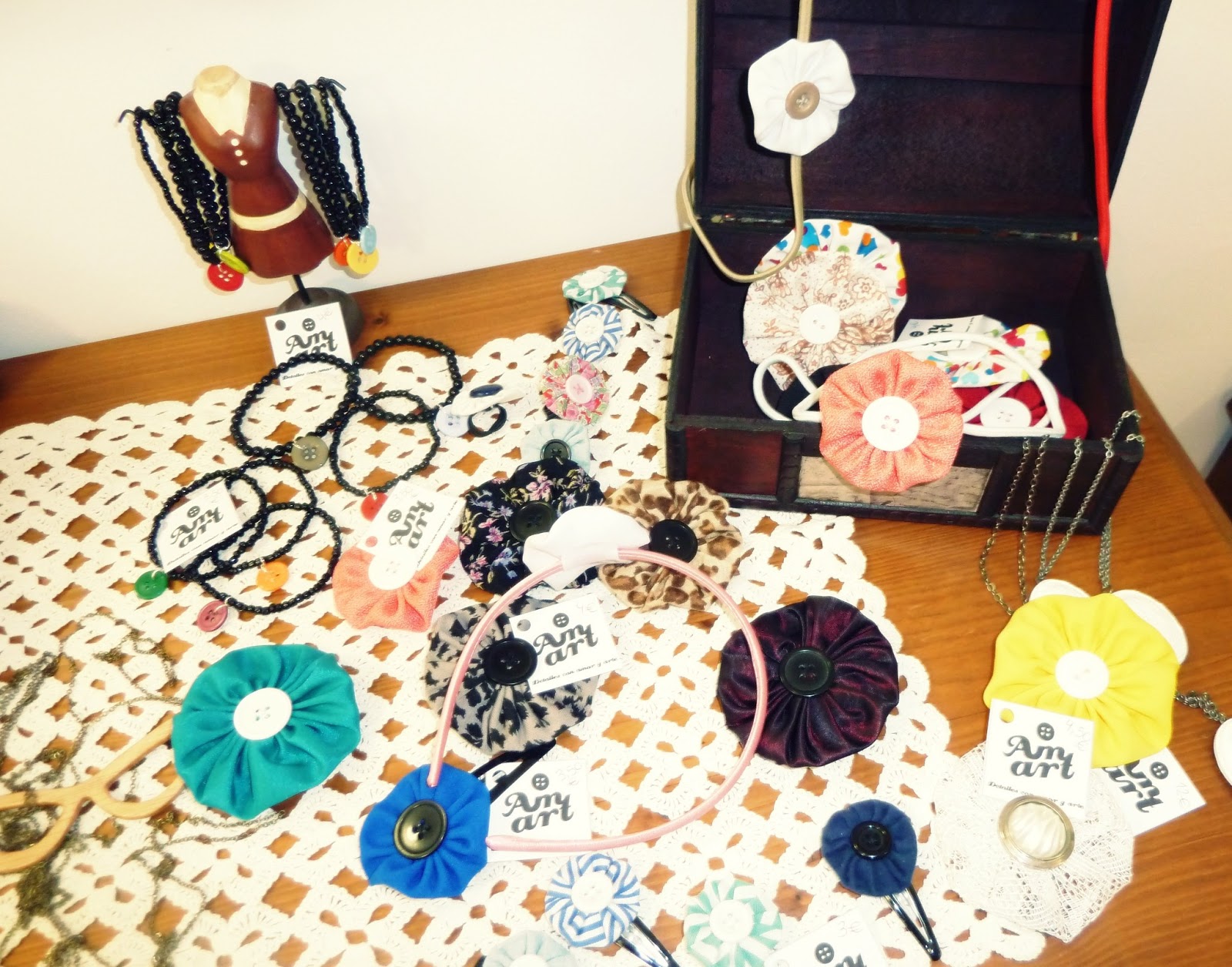 sus famosas flores de tela y saquitos para los dolores cervicales