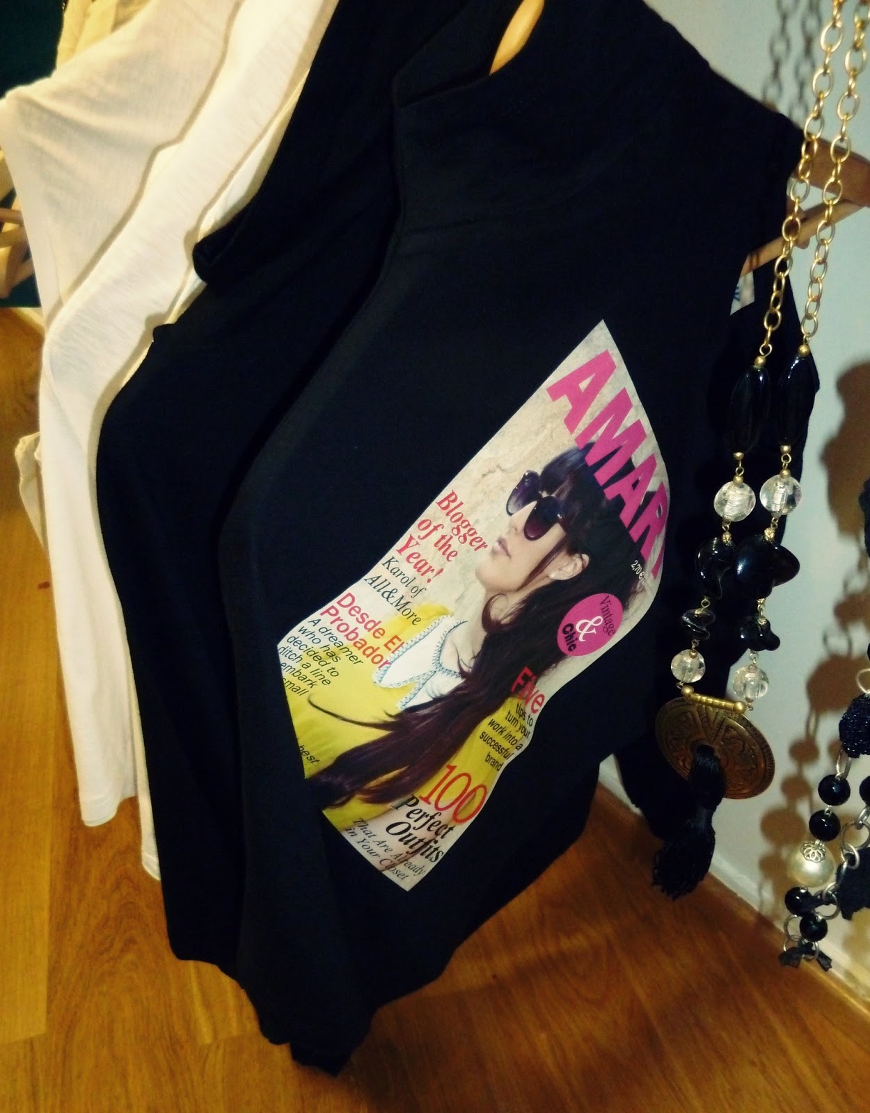 camisetas únicas, la chica de la imagen en Carol del blog De todo & más, que además diseña anillos que también se venden en AmArt, preciosos!