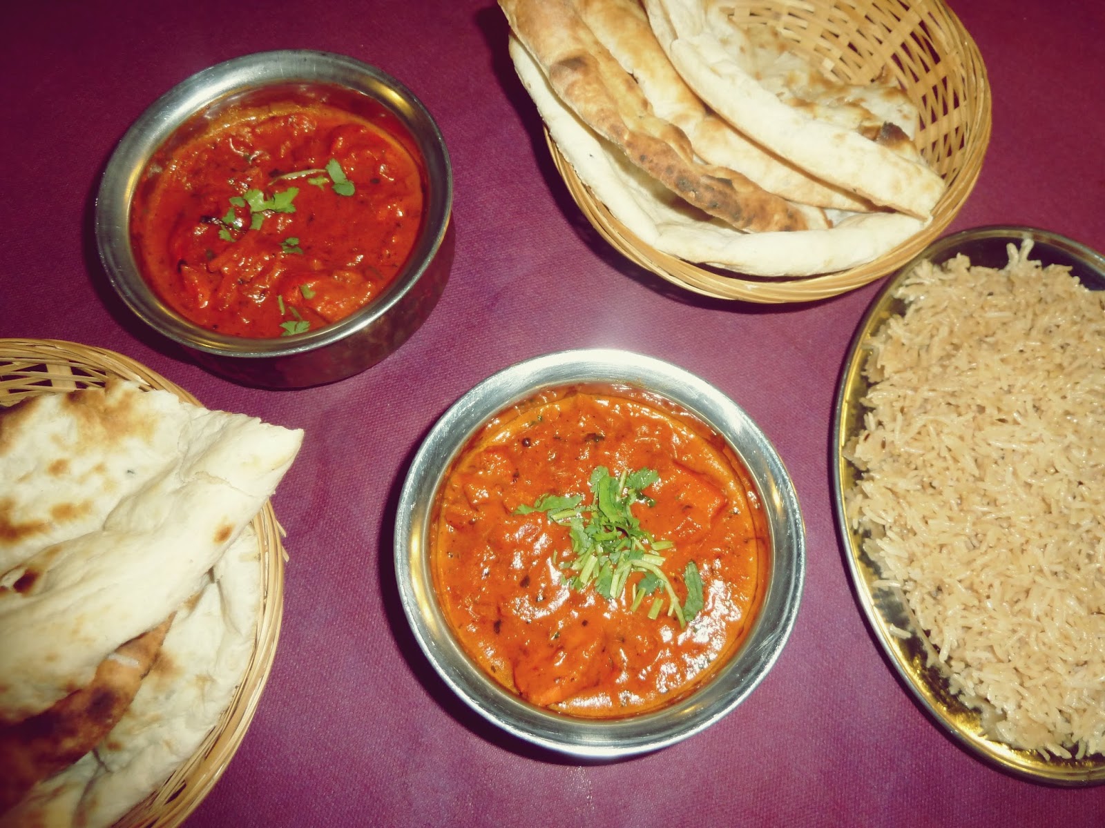Pollo Tika Masala con arroz basmati Punjab y pan hindú
