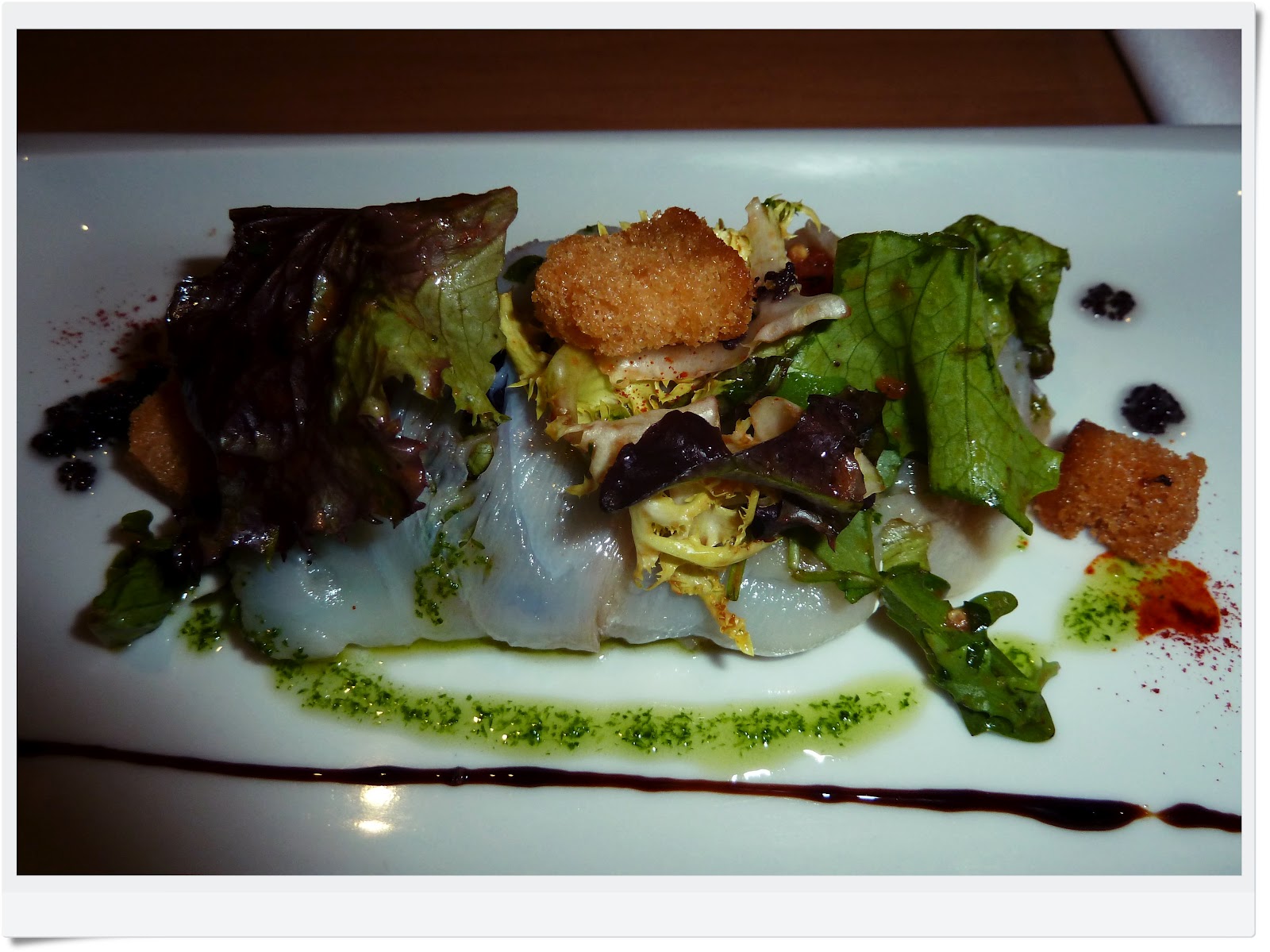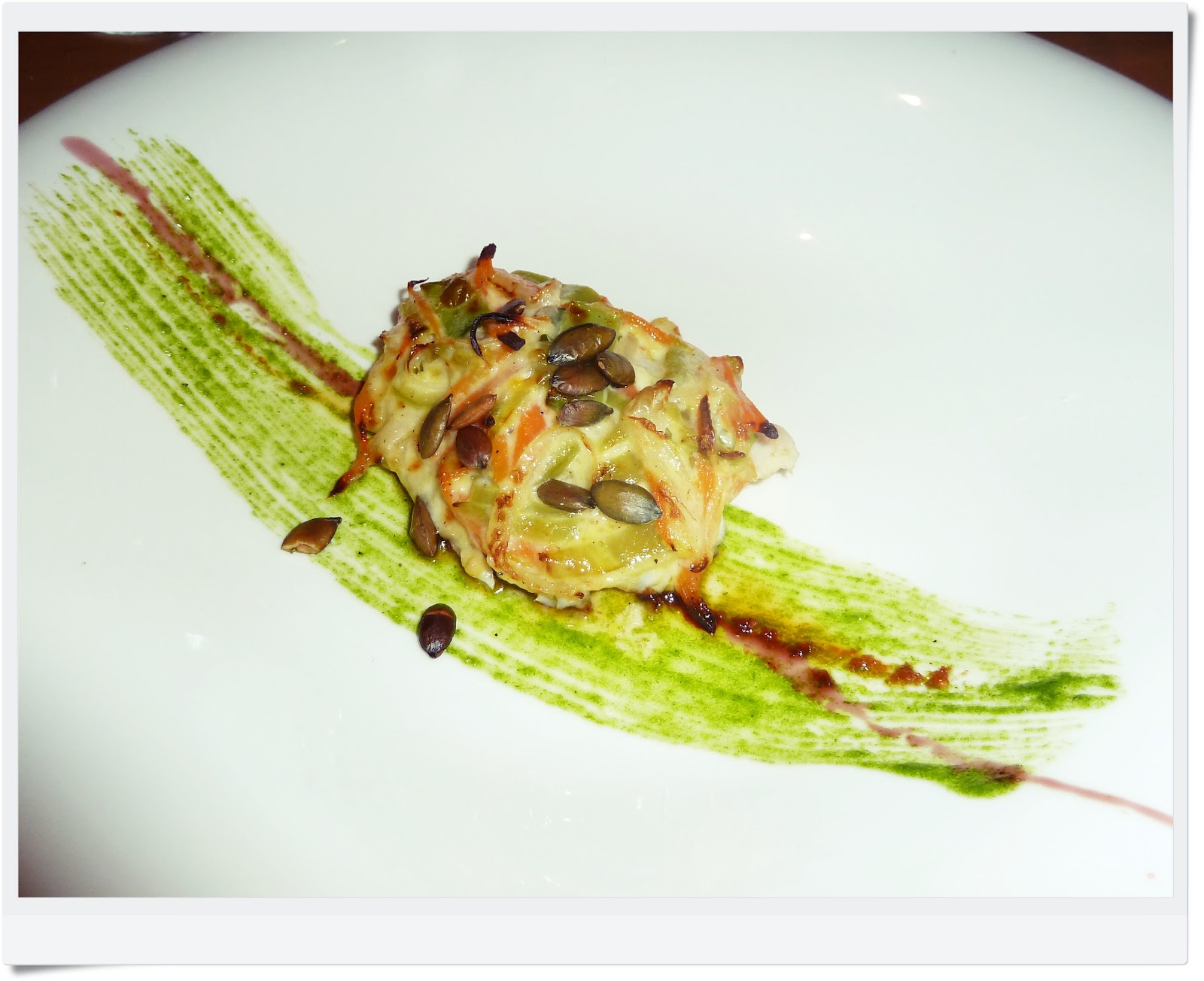 Como primer plato, cantora (que es un pescado que no conocía) con verduritas, el toque se lo daban unas pipas de calabaza tostadas, la combinación de texturas es increíble, es algo con lo que me quedo para probar en casa, os lo aconsejo.