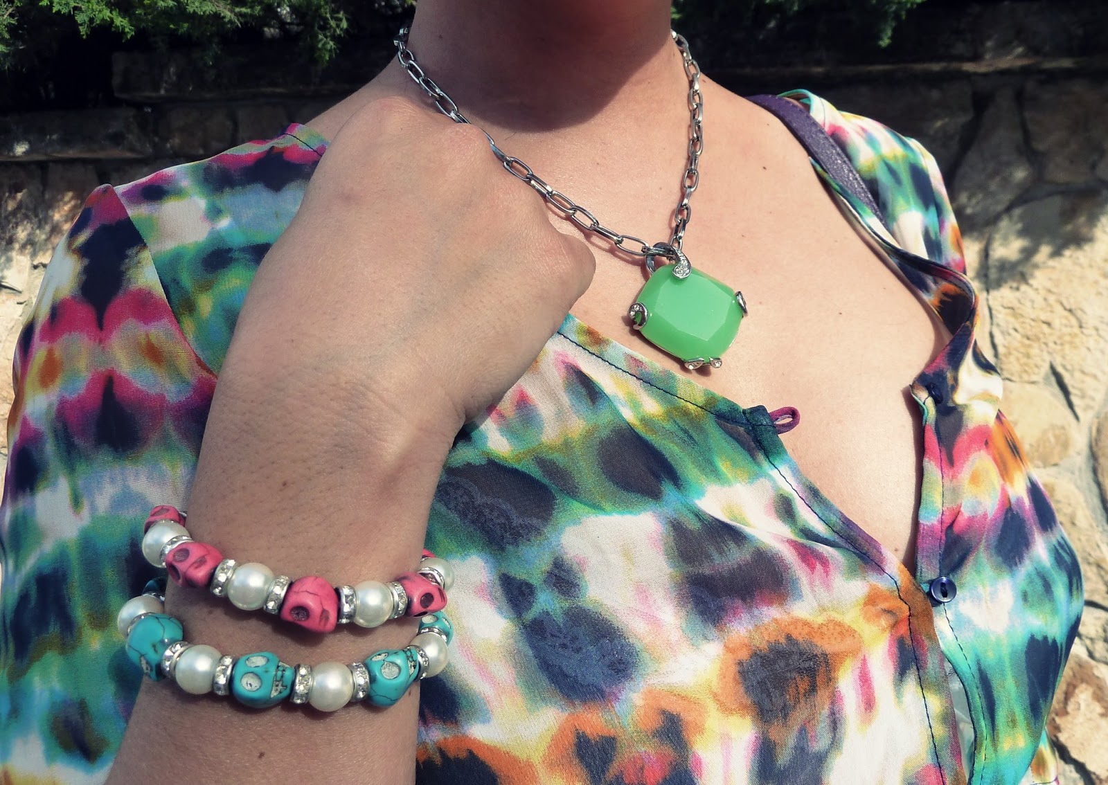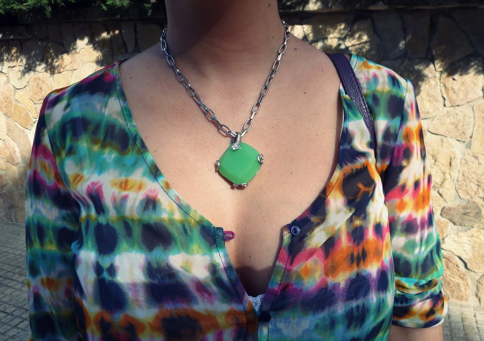 El collar lo tuve a la venta el año pasado en mi showroom, en azul parecía el collar que sale en la película Titanic, yo me lo quedé en verde, en concreto para llevar con este vestido y la verdad que no me lo he puesto demasiado, esta temporada le tengo que dar más uso.