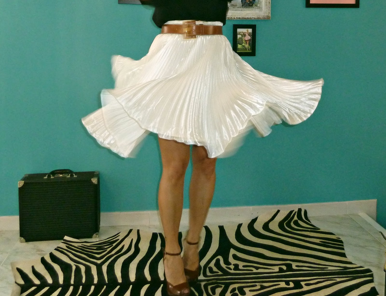 Para la ocasión, he optado por un look en blanco y negro. La falda tiene una caída preciosa y en verano, me la pongo a modo de vestido en palabra de honor para looks de noche.